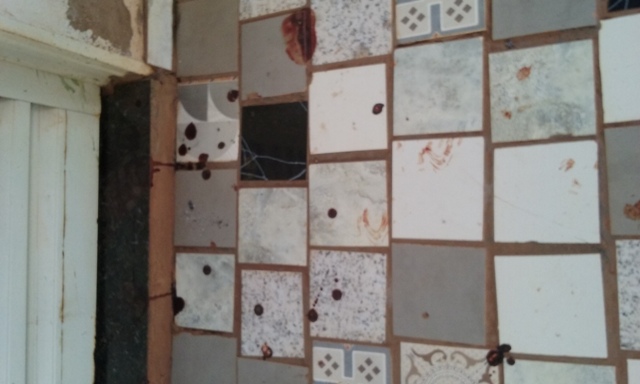 A Polícia Militar foi acionada e verificou que no quarto e na varanda da residência haviam marcas de sangue provenientes do ferimento causado no bandido.