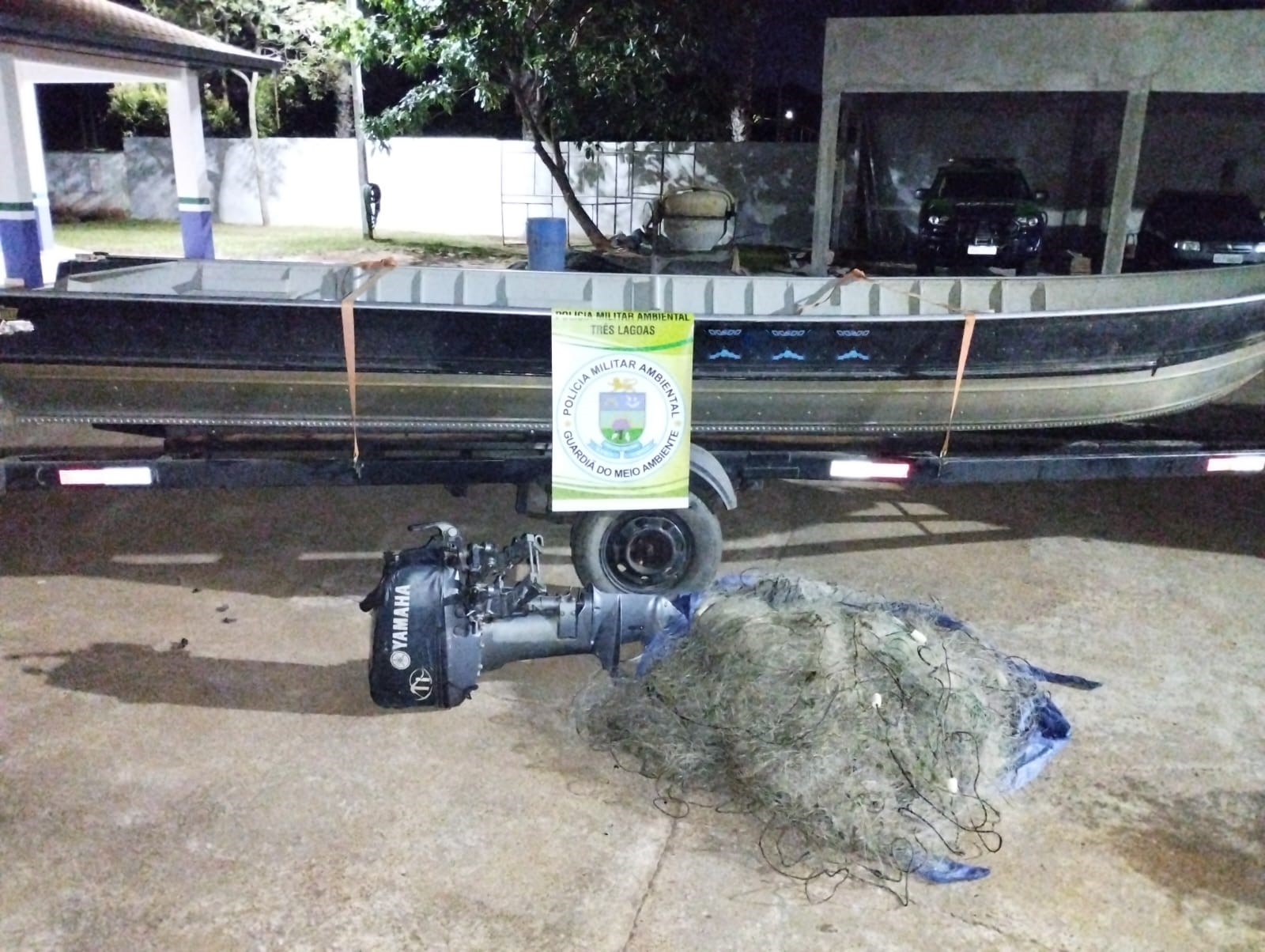 Um pescador que estava em um barco e pescava com rede de pesca (petrecho proibido) foi surpreendido armando o petrecho ilegal, por Policiais Militares Ambientais de Três Lagoas, quando realizavam fiscalização fluvial no rio Sucuriú no município ontem (29) no final da tarde, em uma região em que os Policiais monitoram por ser ponto em que pescadores armam este tipo de petrecho ilegal.