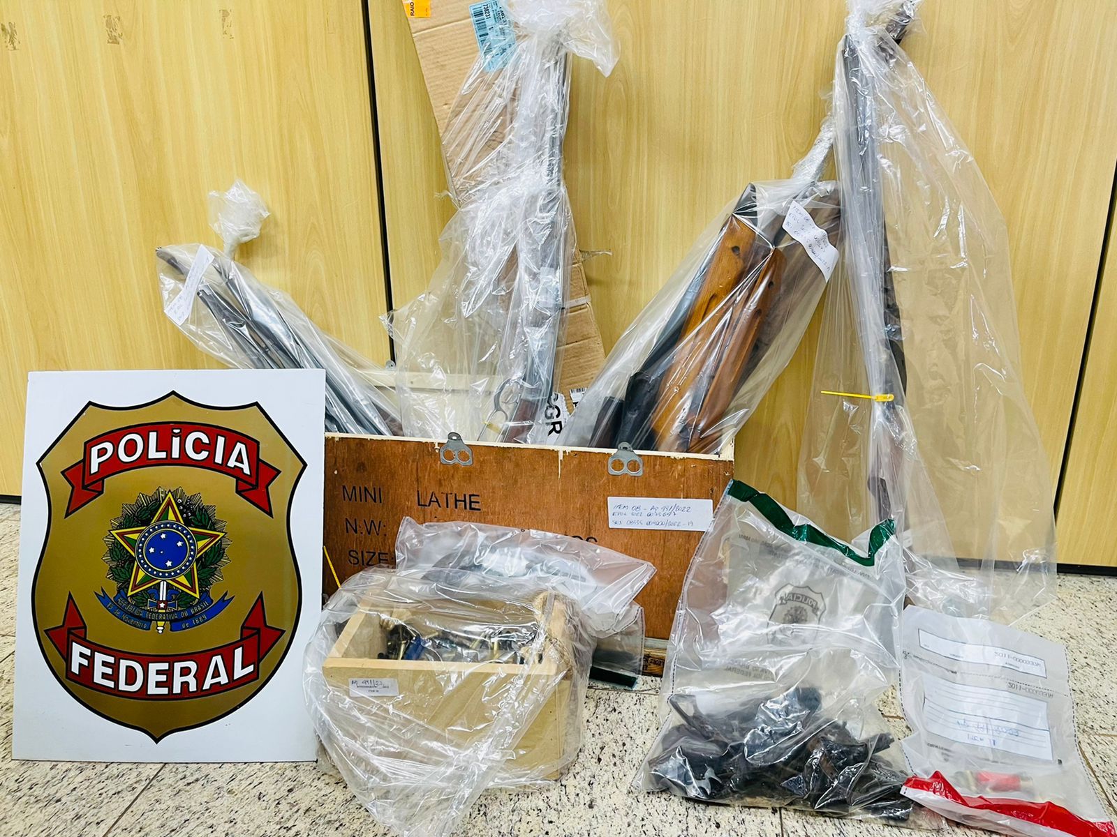 Foram apreendidos pistolas, fuzis e coletes balísticos nesta sexta (14) pela Polícia Federal.