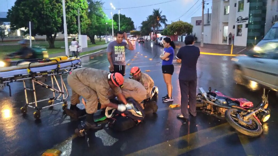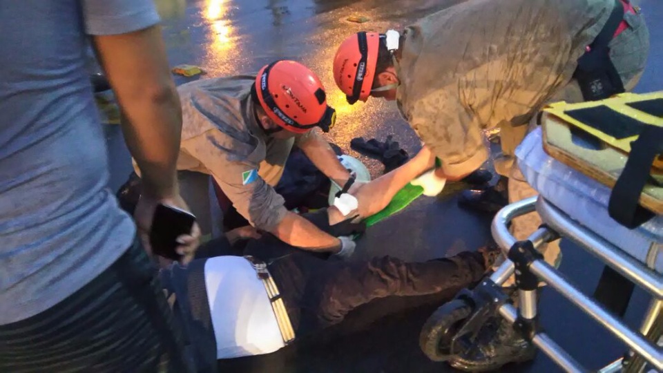 Um motociclista de 37 anos sofreu uma queda quando realizava a rotatória da Avenida Aldair Rosa de Oliveira e foi socorrido pela equipe do Corpo de Bombeiros de Três Lagoas.
