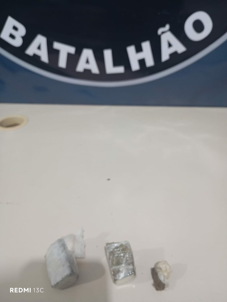 Ocorrência foi registrada na madrugada de quarta-feira (24); homem tentou enganar policiais durante abordagem e estava com drogas para consumo pessoal