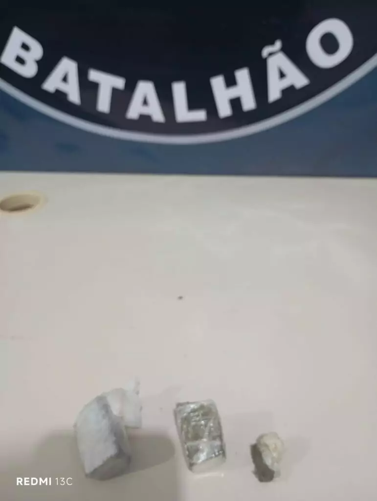 Ainda segundo o registro, também foi constatado o porte de drogas para consumo pessoal, sem autorização ou em desacordo com determinação legal. O fato foi enquadrado como portar, adquirir, guardar, ter em depósito, transportar ou trazer consigo entorpecentes para uso próprio.