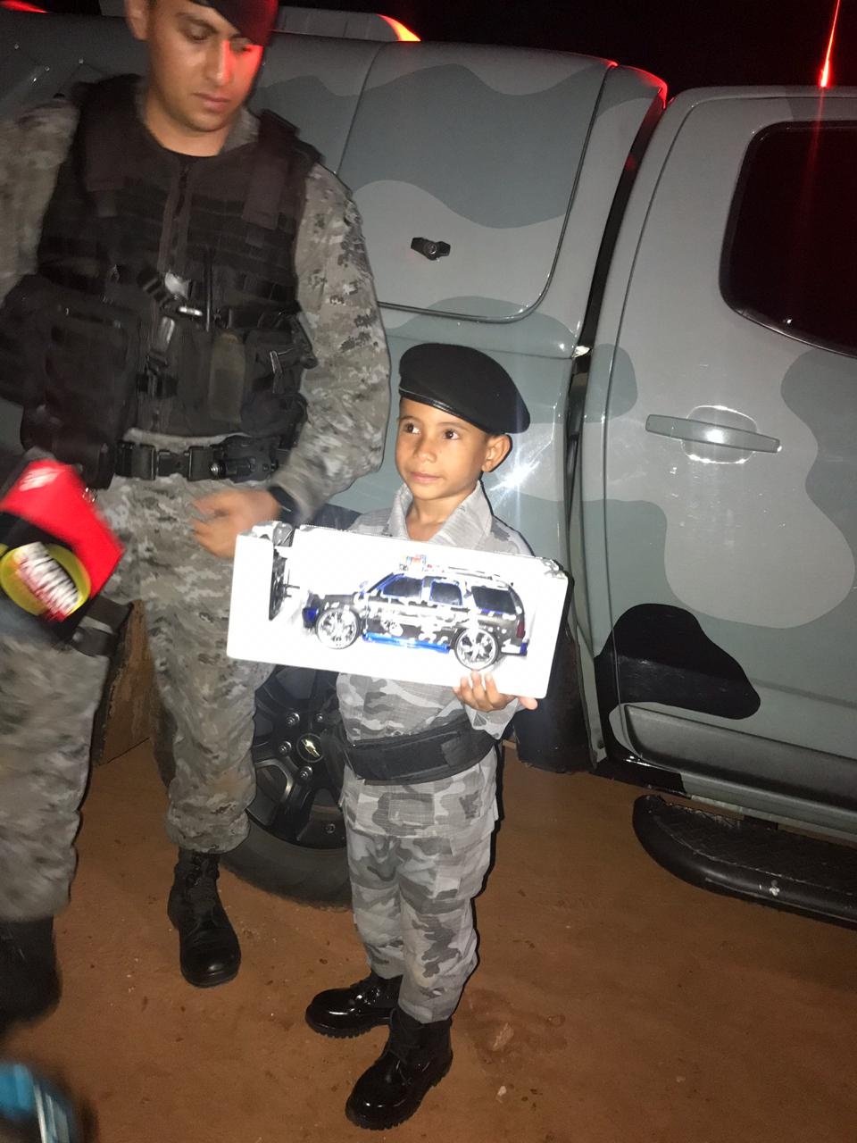Foi grande a emoção do garoto com a chegada dos policiais em seu aniversário. No final a criança, que admira e sonha ser policial, ainda recebeu da guarnição um carrinho de controle remoto que foi caracterizado com símbolo e cores da Força Tática.
