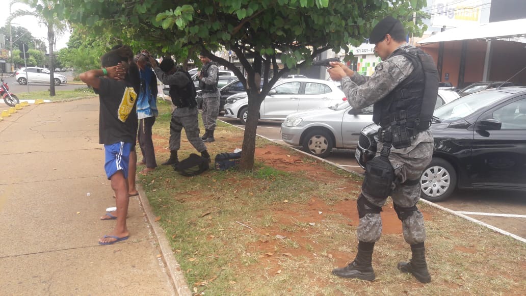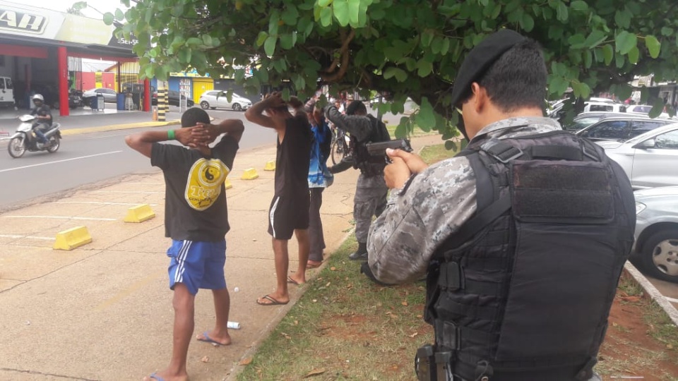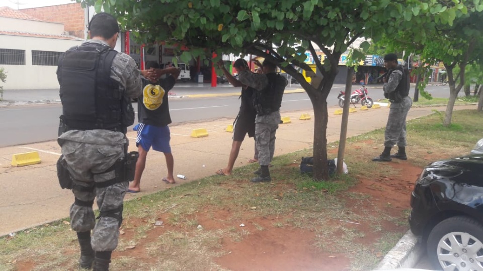 Neste mesmo dia, a guarnição da Força Tática abordou algumas pessoas que estavam em frente a um Supermercado no Centro da cidade após o gerente acionar a PM.