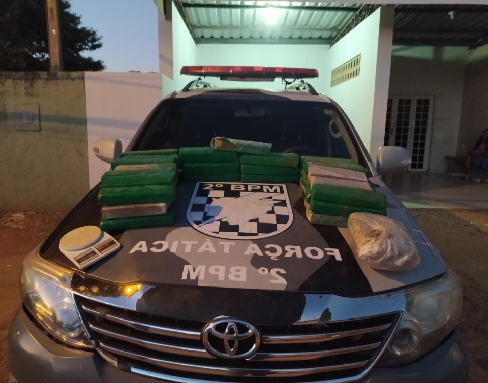 A equipe realizou a abordagem, localizando a droga. Questionado se haveria mais droga na residência no bairro Vila Alegre, os envolvidos negaram. Os policiais voltaram ao bairro Vila Alegre e localizaram, enterrados no quintal da residência vários tabletes de maconha, um quilo de skunk e uma balança de precisão.