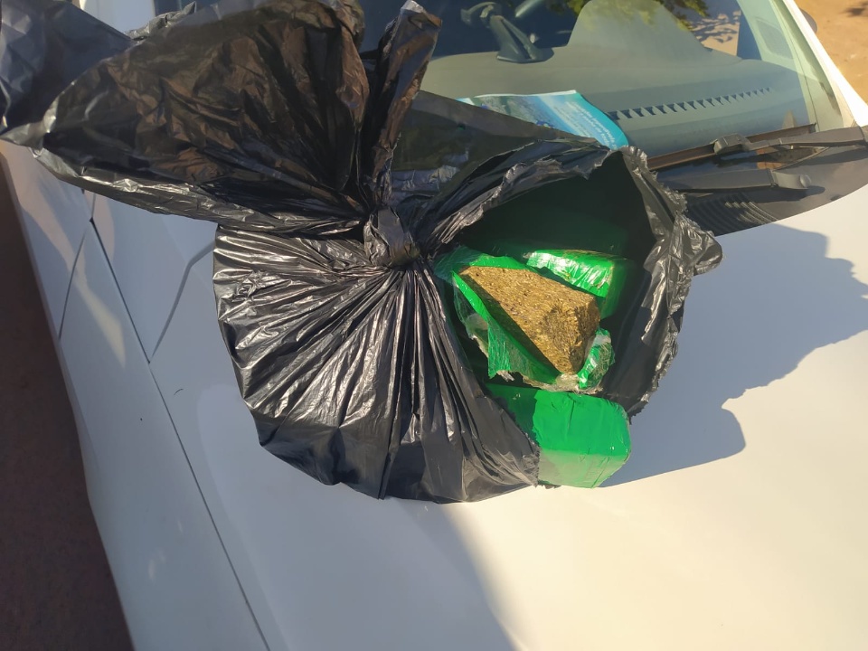 Diversos tabletes de maconha foram encontrados enterrados no quintal da residência