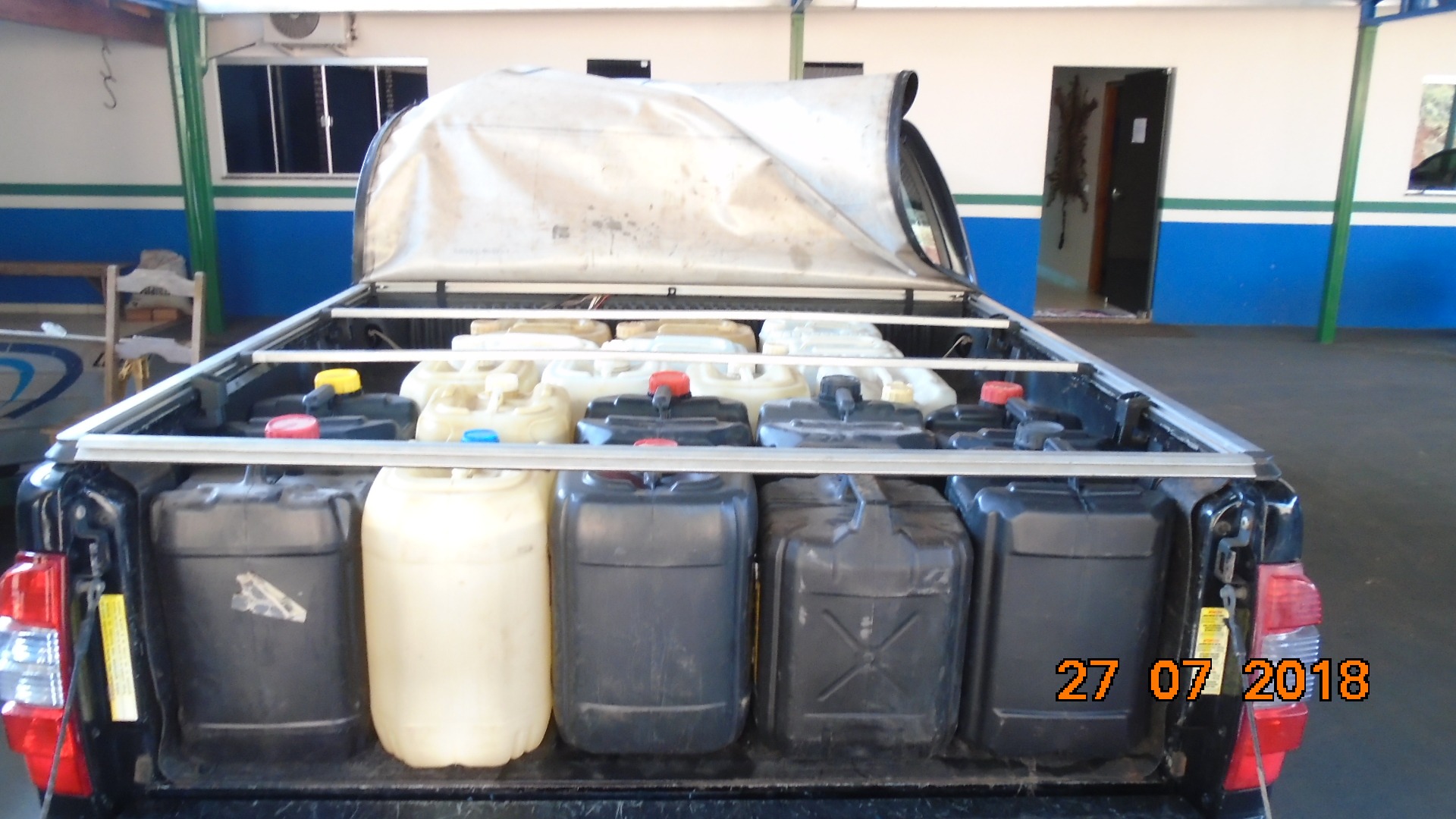 Durante fiscalização na rodovia BR-158, nas proximidades da divisa com o estado de Goiás, Policiais Militares Ambientais de Cassilândia (MS) apreenderam nesta sexta-feira (27), um veículo Chevrolet S10, com placas de Goiânia (GO) transportando combustível (produto perigoso) ilegalmente.