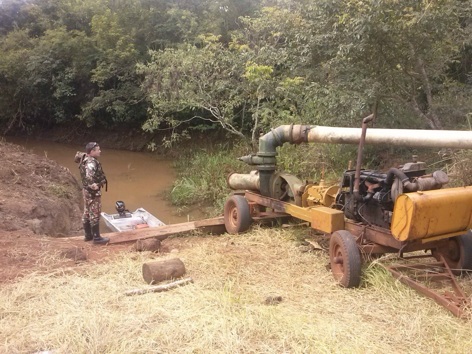 Uma equipe de Policiais Militares Ambientais de Dourados (MS) realizava fiscalização hoje pela manhã no rio Dourado, no município de Ponta Porã (MS) e autuou um arrendatário de uma propriedade rural por degradação de mata ciliar do rio Dourado (área de preservação permanente – APP). O agricultor, residente em Dourados (MS) realizou a abertura de um canal de 53 metros na margem do rio, com a derrubada da mata ciliar, para a implantação de uma moto-bomba para puxar água, que iria irrigar uma plantação de arroz, para a qual o solo estava sendo preparado. Toda a atividade era realizada sem nenhuma autorização ambiental.
