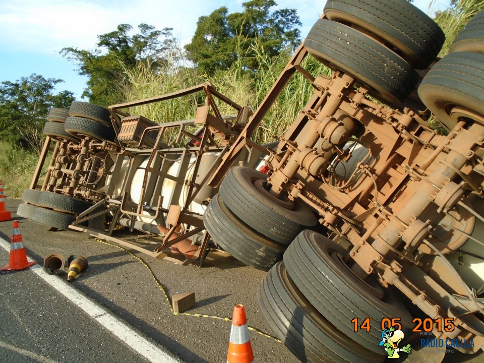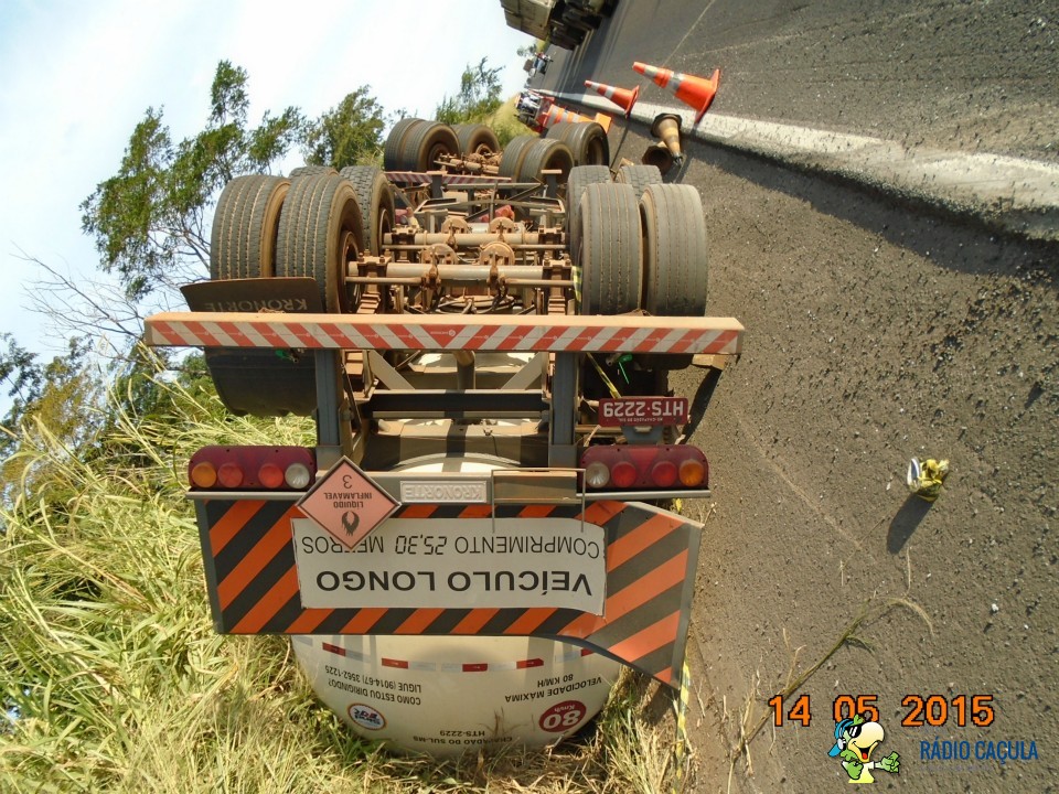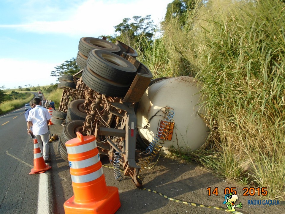 O tombamento da carreta afetou a tampa e parte de um dos tanques e houve derramamento do etanol, que escorreu pelas galerias, atingindo o córrego Barreiro à margem da rodovia. Uma empresa especializada em execução de plano de emergência, contratada pela proprietária do veículo, já executava as ações de contenção do material.