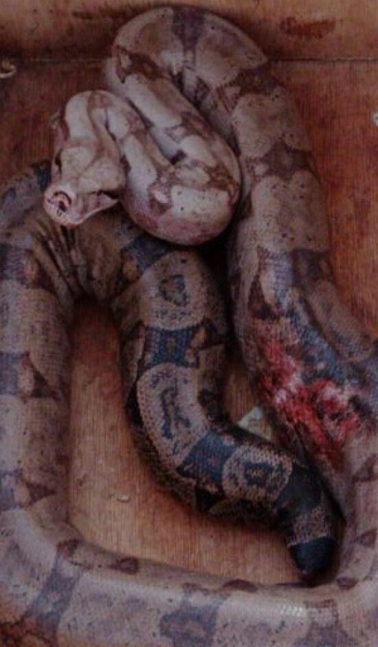 Segundo a PMA, quando a equipe ambiental chegou, perceberam uma lesão recente no réptil, possivelmente causada por atropelamento em uma rodovia vicinal perto do local onde a cobra estava.
