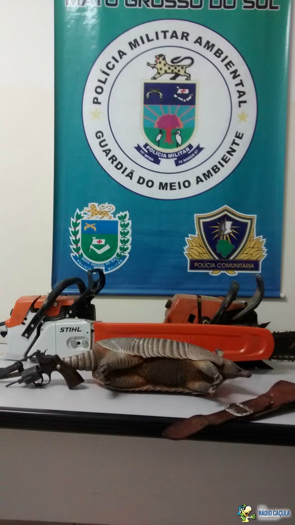 PMA prende caçador com animal abatido, apreende arma e munições e motosserras