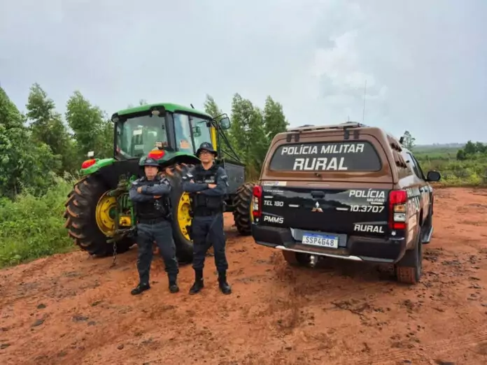 A Polícia Militar Rural de Mato Grosso do Sul, por meio do Batalhão de Polícia Militar Rural (BPMRu), recuperou na tarde de quinta-feira, 26, um trator furtado durante diligências realizadas na zona rural do município de Selvíria. A operação faz parte das ações de combate aos crimes que afetam o setor produtivo e o patrimônio rural no Estado.