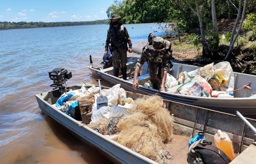 A equipe ainda retirou diversos petrechos ilegais do rio e soltou peixes que estavam presos aos petrechos ilegais. Foram retiradas 15 redes de pesca do rio, medindo 400 metros de comprimento. Os Policiais não localizaram os infratores que haviam armado as redes de pesca.