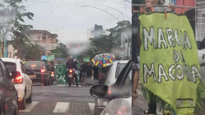 MIDIAMAX –Manifestantes realizaram no final da tarde deste sábado (10) a Marcha da Maconha em Campo Grande (MS). Segurando cartazes de apologia à erva, os participantes estavam, em sua maioria, a pé e em motocicletas. O principal ponto de concentração aconteceu na Rua 14 de Julho, região central, onde também foram registrados alguns tumultos no trânsito.