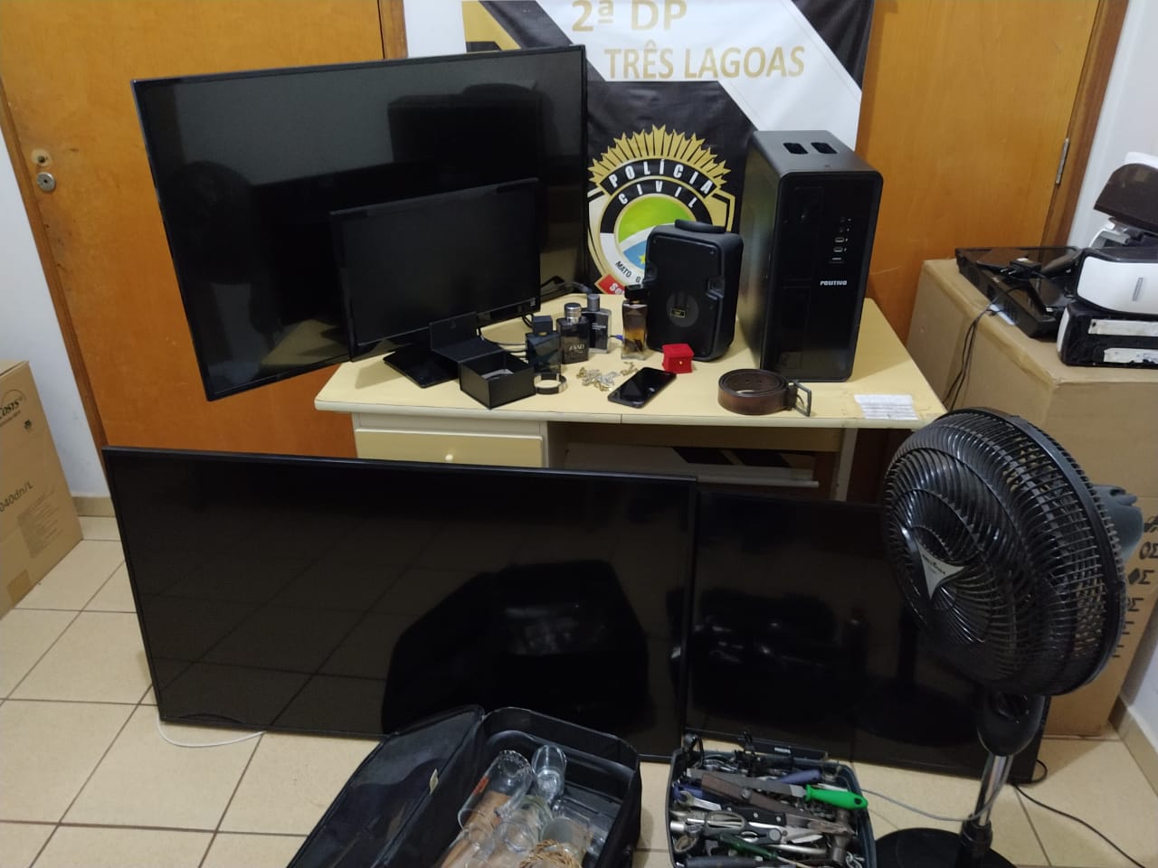 Os suspeitos ficaram no interior da residência da vítima por um período de quatro horas e levaram do local quatro televisores, um de 55″ e três de 42″, um notebook, um computador e monitor, uma caixa de som, dois ares condicionados, um ventilador e um perfume. Durante a ação, os autores utilizaram um veículo Saveiro para o transporte dos objetos até a residência do criminoso de 19 anos no bairro Nova Três Lagoas, onde dividiram os produtos do crime.