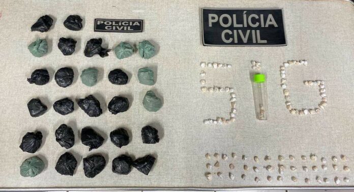 Diante da situação, investigadores abordaram e vistoriaram residência, e, de início, localizaram no chão uma sacola com 102 pedras de crack. Na cozinha da casa, foi encontrado frasco contento outras quatro pedras de crack, e num dos quartos foi localizado outra sacola contendo 27 porções de maconha.