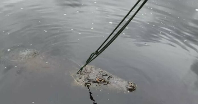Os homens caçavam jacarés utilizando cordas com laços. Os agentes encontraram um animal amarrado com ferimento no crânio após a tentativa de abate por parte dos infratores. A suspeita da PMA é que eles desistiram para abatê-lo depois com os outros jacarés em local mais reservado para terem a possibilidade de soltá-los para fugir da fiscalização e da situação de flagrante.