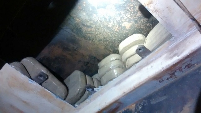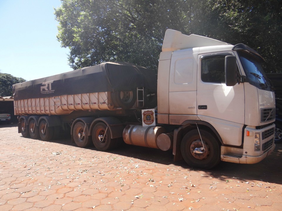 A Equipe de policiais federais abordou o caminhão Volvo carregado de soja na BR-267, próximo a Rio Brilhante/MS, oportunidade que observaram o nervosismo do motorista e que a carga destinava ao Porto de Santos, após breve fiscalização foi conduzido para a Superintendência Regional da PF em Campo Grande/MS. Aqui após minuciosa vistoria encontraram na parte dianteira da caçamba acoplada ao cavalo mecânico Volvo, local adrede preparado com vários tabletes envoltos em fita adesiva, que submetidas a exame constatou ser cocaína. Segundo o motorista, proprietário do caminhão e caçamba, residente em Corumbá/MS, disse que a droga foi carregada num local próximo de Jardim/MS e seria entregue no Estado de São Paulo.
