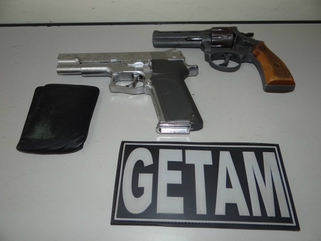 Ao se aproximar do cruzamento com a rua Nelson de Araújo, ambos caíram. Com Pitbull os militares encontraram um revólver calibre 32 e o jovem estava em posse de uma pistola de brinquedo.