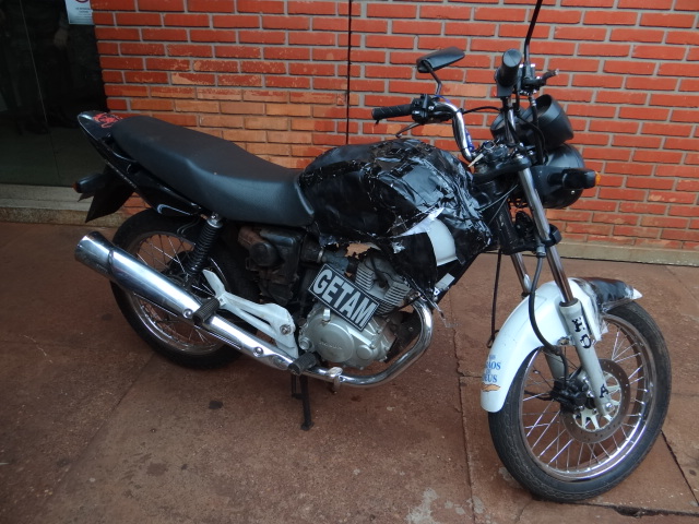 Na tarde de ontem (17), em tentativa de despistar a polícia, a dupla colou papel pela moto e em seguida pintou de preto.