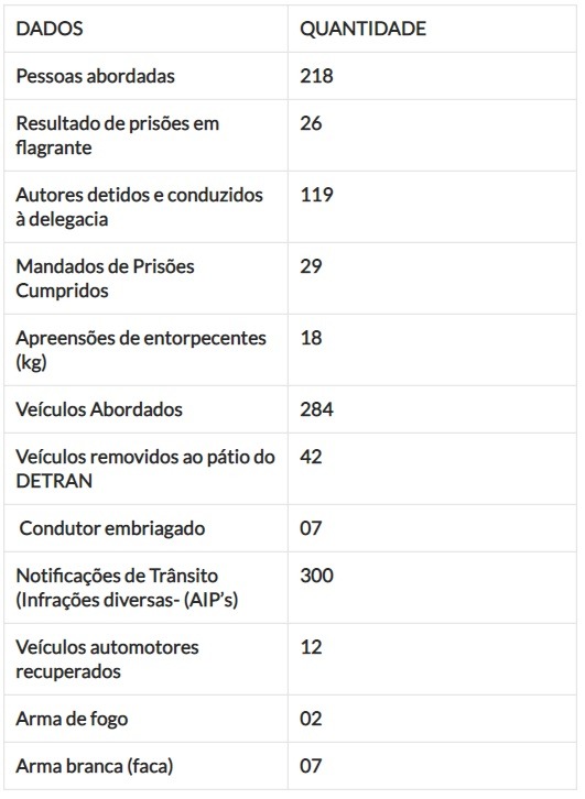 Segundo o Major Ênio de Souza Soares Comandante do 2°BPM, os resultados positivos demostram a eficiência dos trabalhos e empenho de toda a corporação na busca de prestar o melhor serviço para a sociedade.