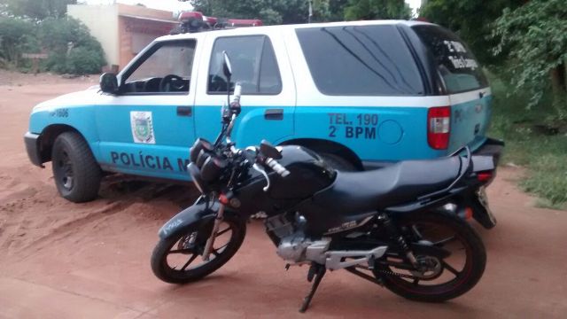 A guarnição realizou a consulta do veículo no sistema da policia e verificaram que a moto estava com restrições administrativas, sendo realizada a apreensão do veículo que foi encaminhado ao pátio do CIRETRAN local.