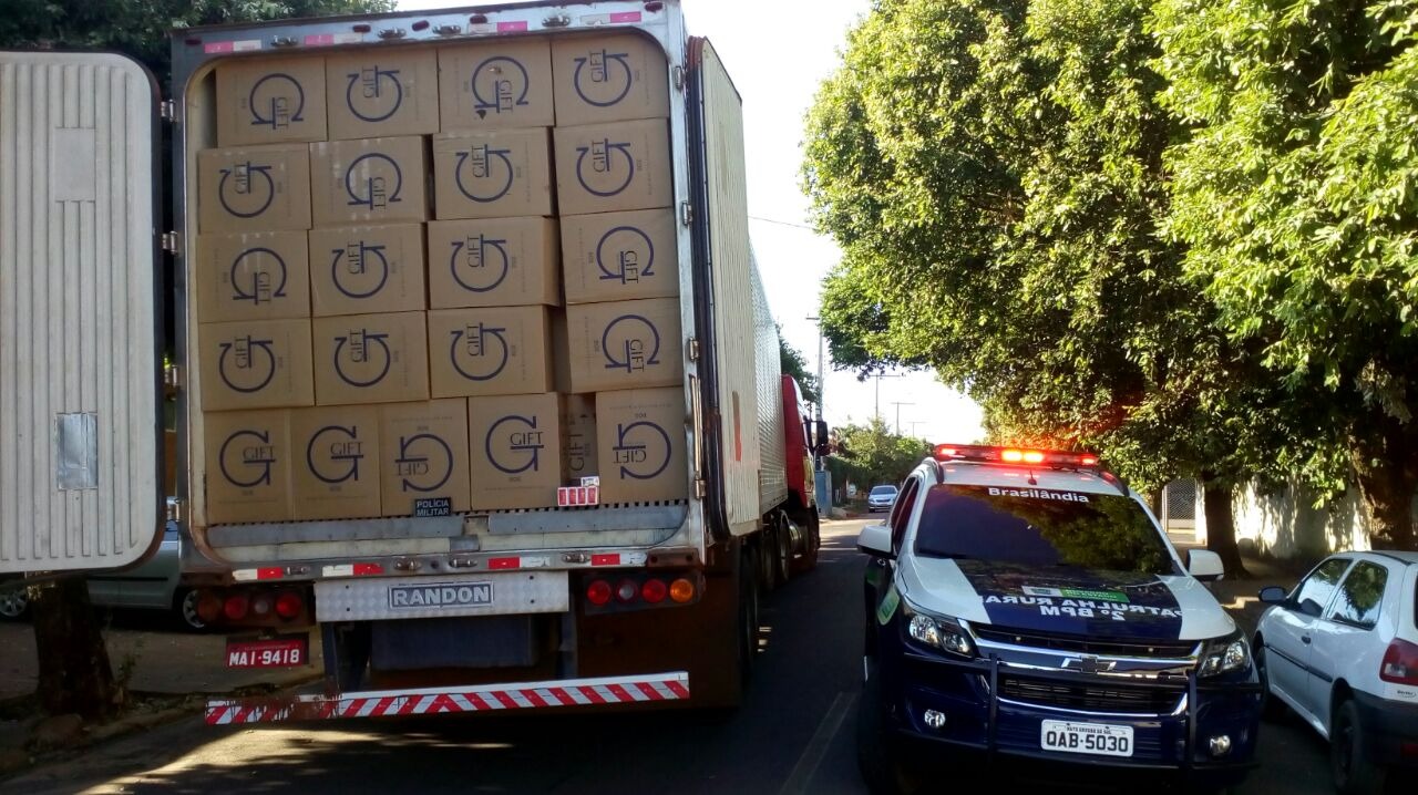 Uma carga milionária de cigarros contrabandeados foi interceptada pela Polícia Militar em Brasilândia na manhã desta terça-feira (8).