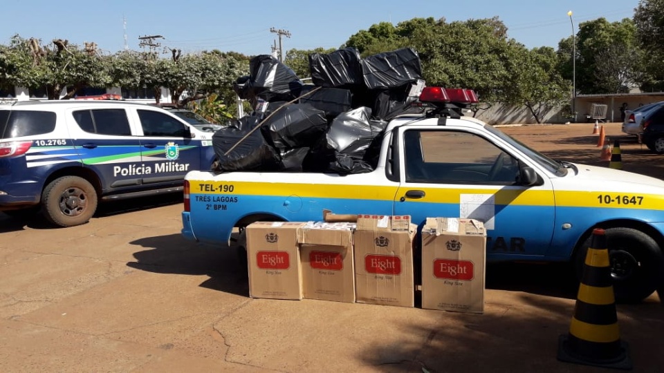 A Polícia Militar apreendeu uma grande quantia de cigarros contrabandeados do Paraguai nesta quinta-feira (23), no bairro Jardim Eldorado, em Três Lagoas (MS). Cerca de 20 caixas de cigarro estavam em uma residência, em posse de um homem de 29 anos.