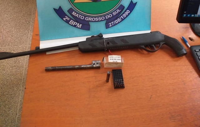 Apesar das diligencias, o acusado não foi localizado, sendo o armamento apreendido e entregue na Delegacia de Polícia Civil.