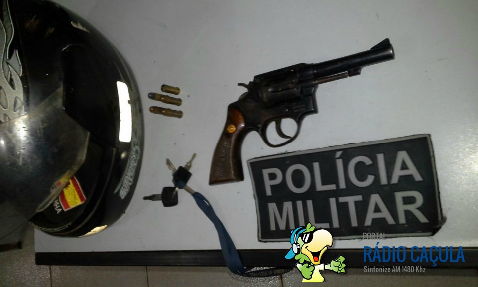 Diante dos fatos a motocicleta e a arma de fogo foram apreendidas e apresentadas junto com o autor para registro do boletim de ocorrência e para que as medidas cabíveis sejam tomadas.
