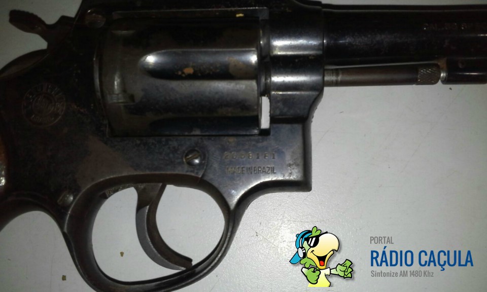 A arma apreendida da marca Taurus calibre 38 estava carregada com 4 munições intactas e mais uma deflagrada, quando questionado o jovem informou que realizou um disparo para o alto na fazenda onde trabalha.