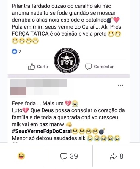 Na tarde desta quinta-feira (26), a Rádio Patrulha apreendeu uma adolescente de 15 anos que fez uma publicação nas redes sociais, incitando a violência contra a Polícia Militar. Ela fez a postagem após a morte de dois menores infratores que fugiram da Unei.