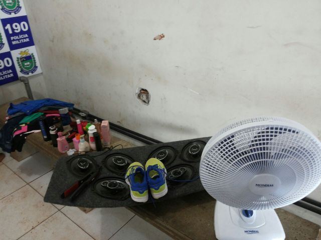 Uma guarnição da ROTAI (Rondas Ostensivas Táticas do Interior) foi acionada e junto com os soldados da Rádio Patrulha se deslocaram até as proximidades da casa do adolescente, onde acompanhados pela mãe do menor realizaram buscas na residência onde localizaram roupas, cremes, perfumes, secador de cabelo, chapinha, um ventilador e um tampão de som que de pronto foram reconhecidos pela vítima como seus pertences.