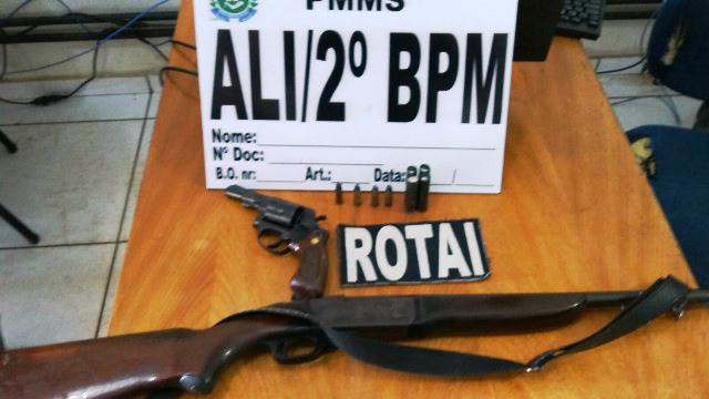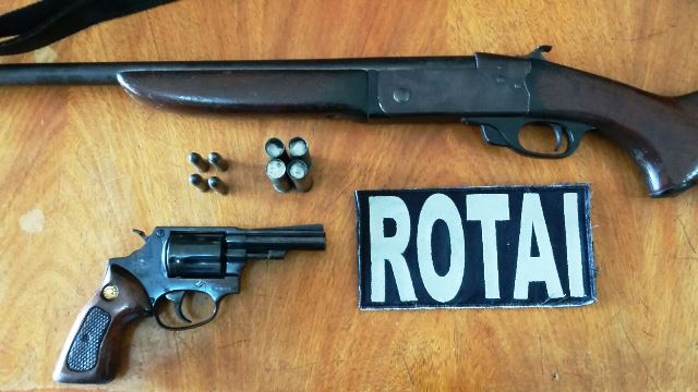 Diante a informação, a polícia foi até a propriedade e em contato com o campeiro confirmou a denúncia apreendendo a espingarda, um revólver calibre 38 – com a numeração raspada – e outras munições intactas dos mesmos calibres.