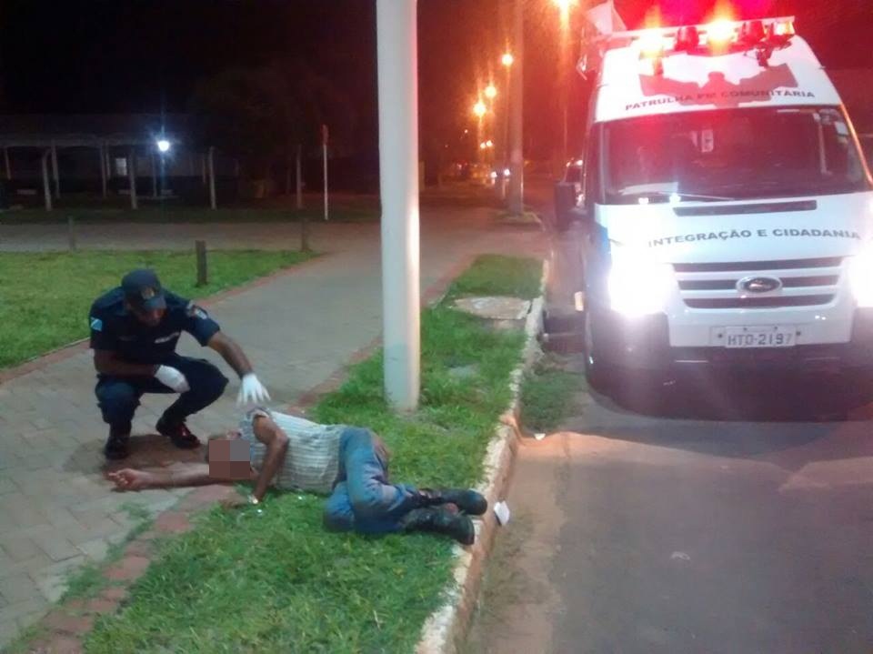 A Polícia Militar em patrulhamento preventivo pela avenida Aldair Rosa de Oliveira avistou um homem de aproximadamente 50 anos caído na orla da Lagoa Maior próximo ao Ginásio Poliesportivo.