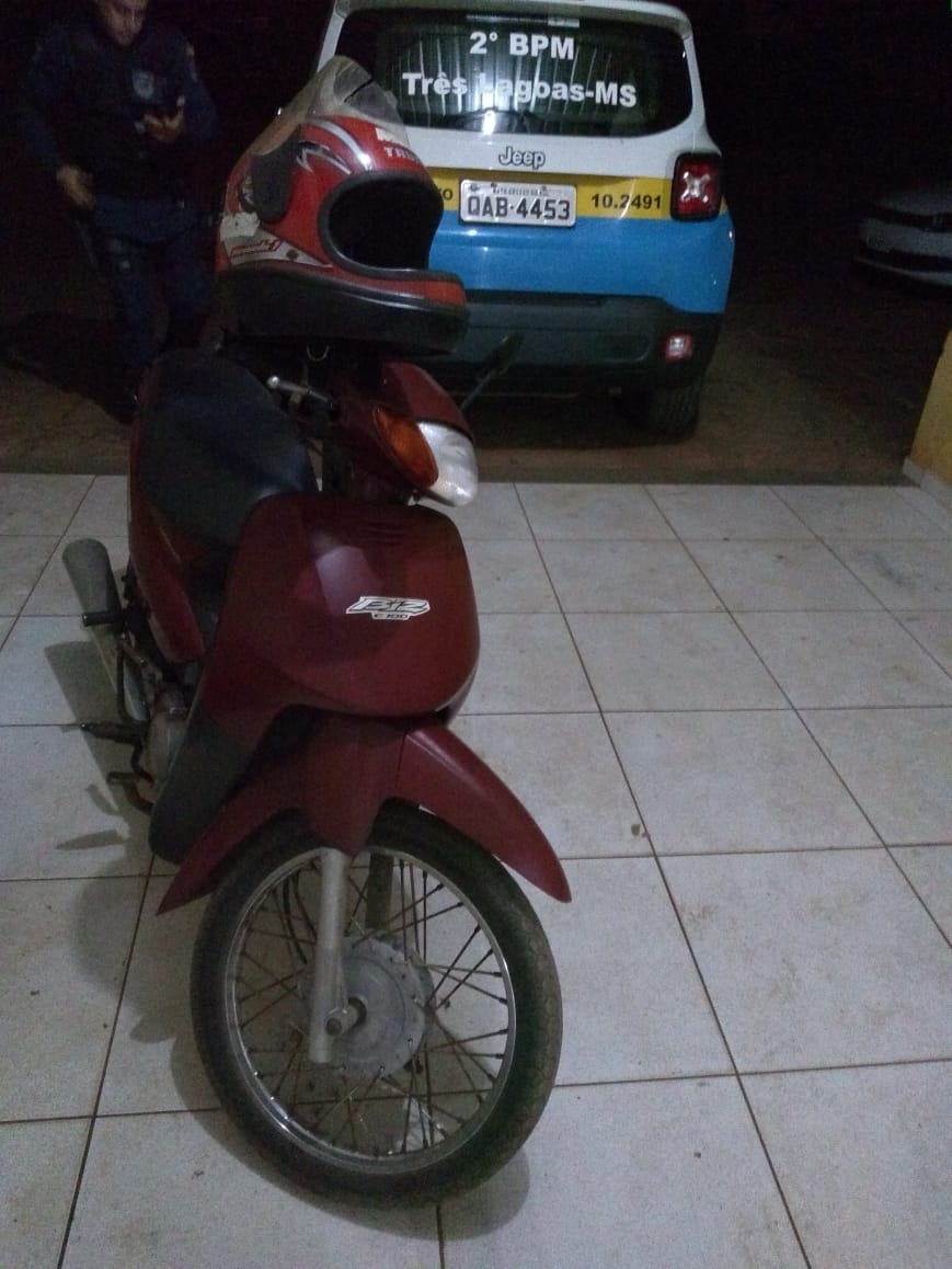 A guarnição fazia um patrulhamento pelo local quando avistou a moto, uma Honda Biz, com placas de Três Lagoas. Ao checar via sistema, foi constatado que a mesma era produto de furto.