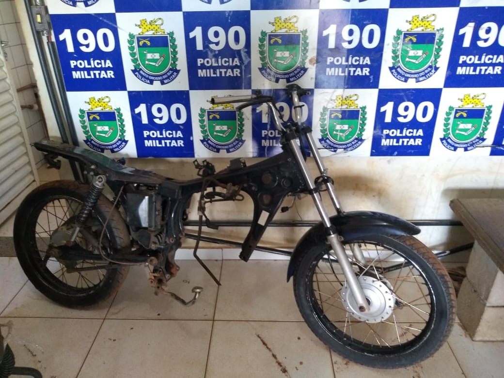 Na manhã de segunda-feira (26), uma guarnição da radiopatrulha localizou uma motocicleta depenada escondida em um terreno baldio próximo a Av. Jary Mercante, no bairro Jardim Alvorada, em Três Lagoas (MS).
