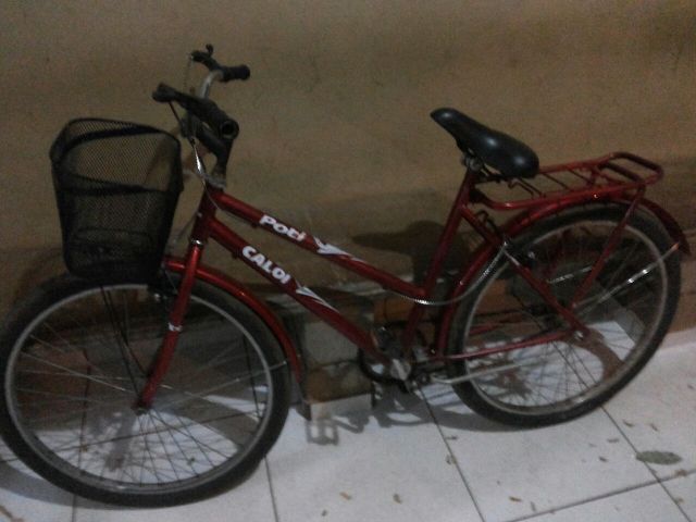 Em continuidade às buscas, os agentes localizaram uma bicicleta Poti vermelha e após consulta no sistema da polícia foi verificado que a mesma é produto de roubo, ocorrido em dezembro de 2015, no local ainda foram encontradas roupas diversas, um televisor e um kit shampoo, todos com origem duvidosa.