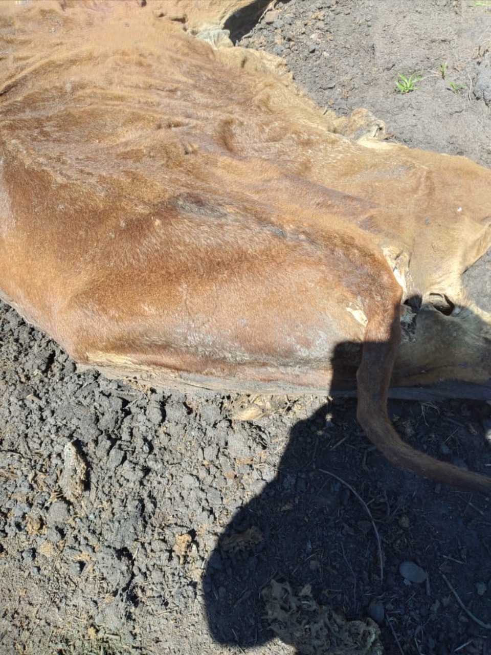 No local foram encontradas quatro carcaças de bovinos. O proprietário ainda não foi localizado