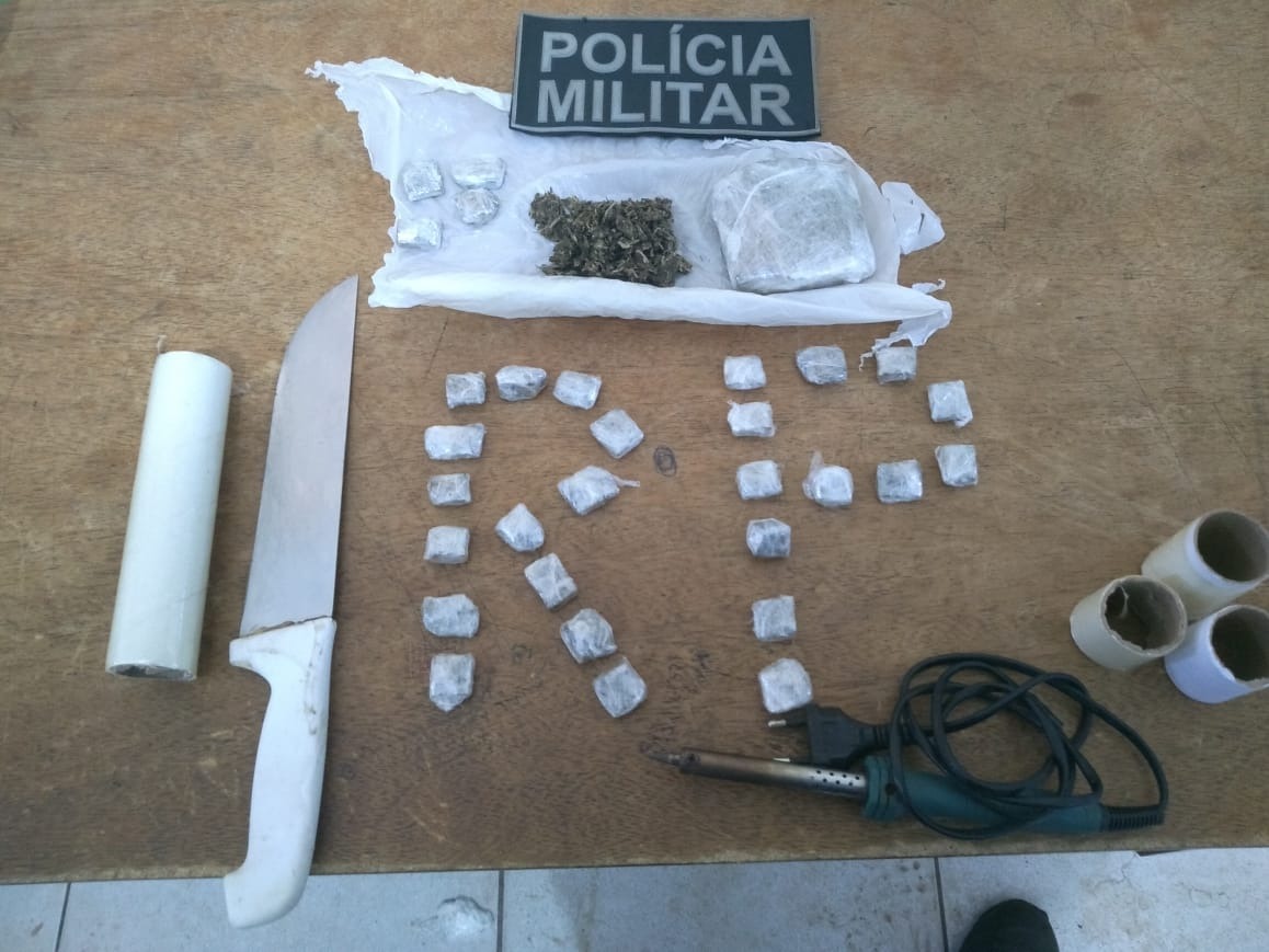Com ele, foram encontradas uma faca, papel plástico e um pirografo, além de 214 gramas de maconha. Diante do fato, ele recebeu voz de prisão e foi encaminhado para a 1ª Delegacia de Polícia Civil para as providências necessárias.