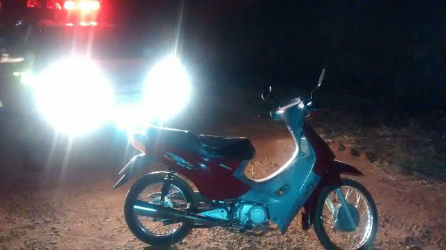 A Polícia Militar de Três Lagoas, através de uma guarnição da Rádio Patrulha composta pelo cabo Coto e o cabo Sena, se deslocou até a Avenida Dom Bosco, bairro Vila Piloto, na noite desta segunda-feira (4), onde de acordo com denuncia anônima havia uma motocicleta Honda Biz vermelha abandonada em meio à vegetação, em um terreno baldio localizado nos fundos do Centro Juvenil Salesiano.