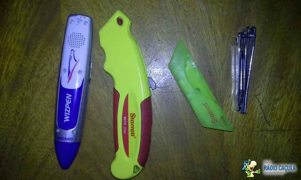 Sendo eles, um frasco de perfume Portinari, um frasco de perfume Lily Essence, um pen drive, diversas moedas, um cortador de unha, um estilete e uma caneta tradutora.