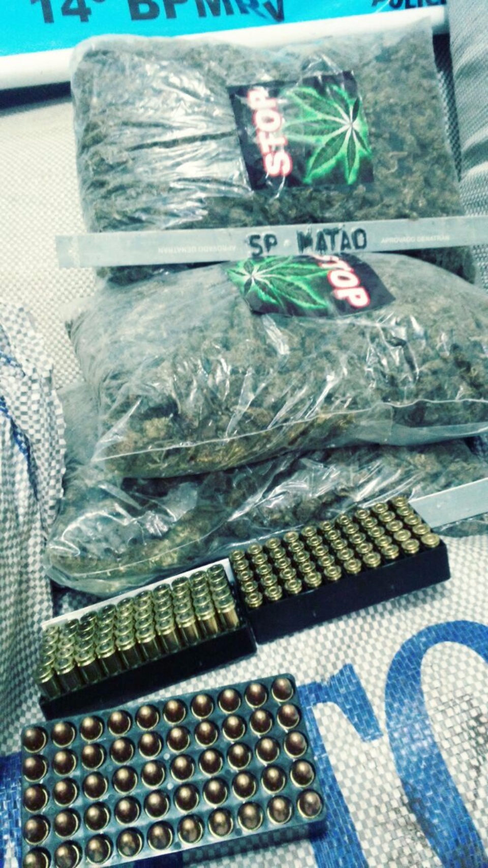 No interior do veículo os policiais localizaram 430 tabletes de maconha, que após pesagem totalizara 430,450 kg da droga, 150 munições e duas placas de veículos do Estado de São Paulo.