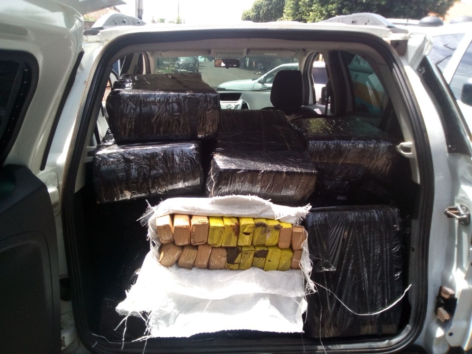 Durante revista no automóvel, que pertence a uma locadora e estava alugado há mais de 30 dias, os agentes encontraram 19 fardos de maconha, que após pesagem totalizou 373 kg da droga.