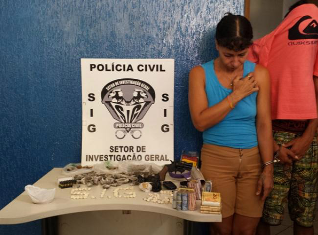 No local os policiais apreenderam cerca de um quilo de entorpecentes divididos em vários envelopes de maconha, cocaína e pasta base, além de, R$ 5.500,00, um simulacro e munições de calibre 32. Na delegacia Resolina negou que tivesse participação com o tráfico e disse que a droga era do filho.