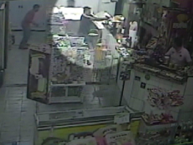 Nas imagens, o policial militar aparece à paisana com camiseta escura, sentado em frente ao balcão, quando três bandidos entram. O que está com gorro e uma jaqueta preta anuncia o assalto, enquanto os outros dois dão cobertura para ele. O policial então se levanta, saca a arma da cintura e o tiroteio começa.