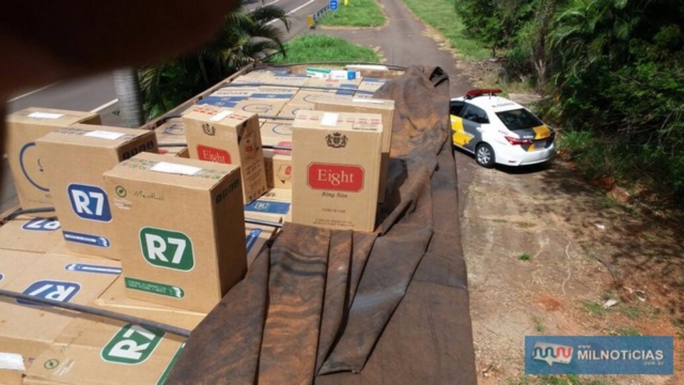 Polícia Rodoviária de Andradina apreende carreta com 400 mil maços de cigarros do Paraguai