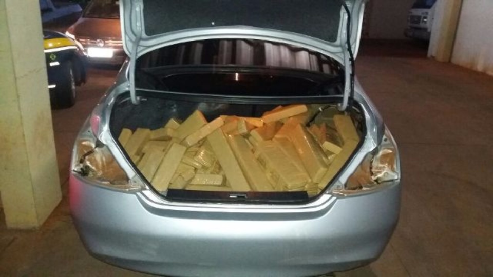 Após busca no veículo, foram localizados 163 tabletes de maconha, que após pesagem totalizaam 150 kg da droga.