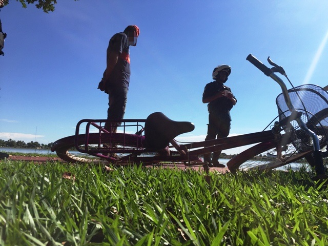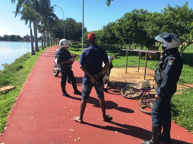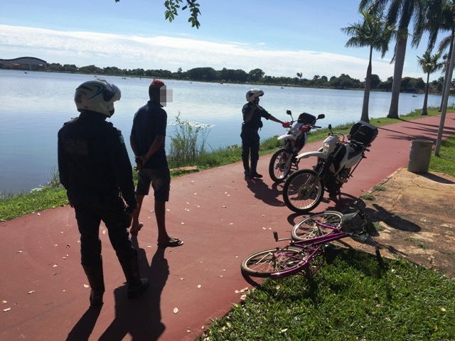 O flagrante ocorreu por volta das 08h na orla da Lagoa Maior e conforme dados da ocorrência, os policiais ao flagrarem o homem andando com a bicicleta Caloi Poti pela pista de caminhadas da lagoa e diante a irregularidade, resolveram abordar o homem identificado como I.J.