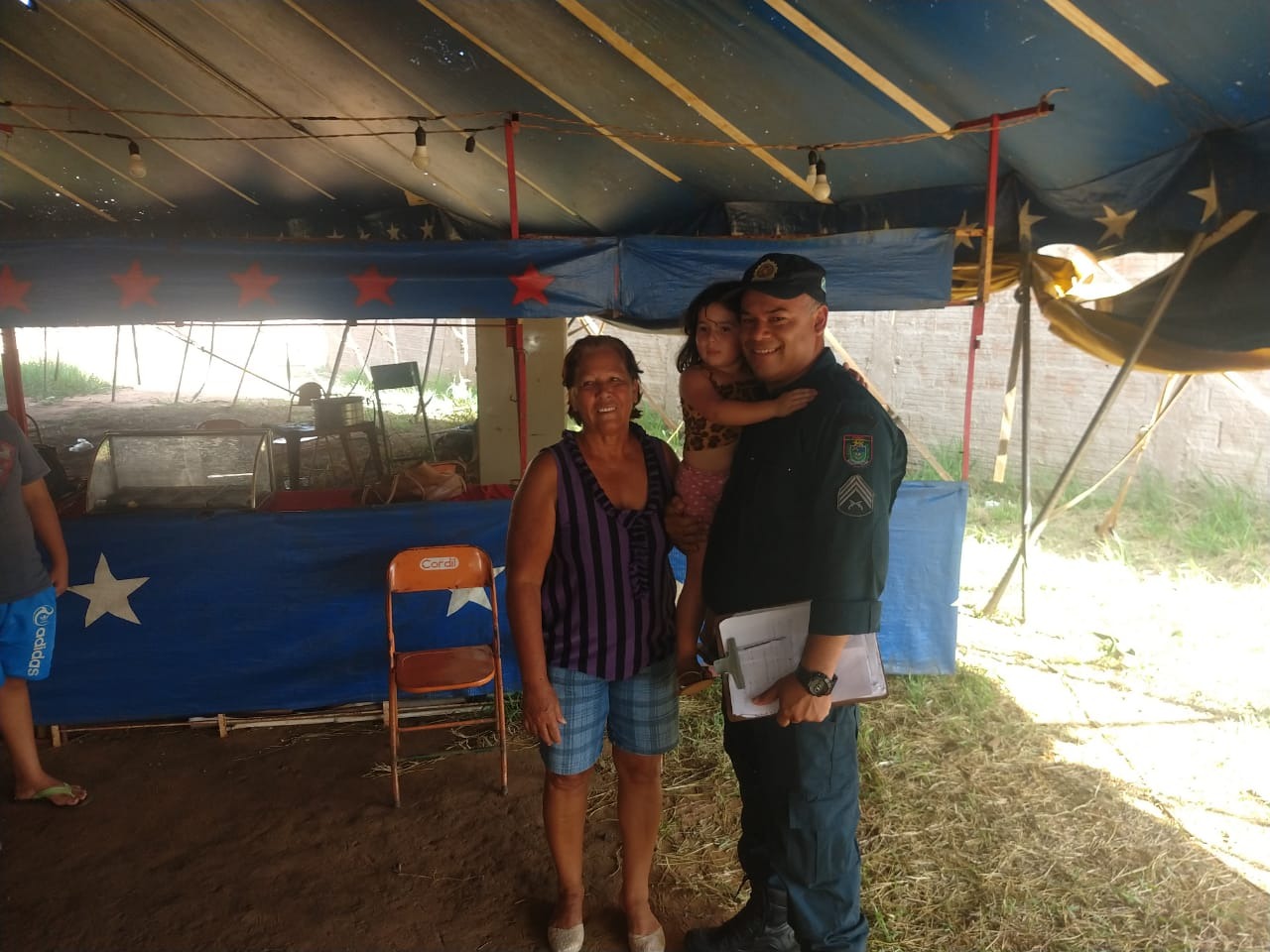 Um policial militar foi o responsável por salvar uma idosa e duas crianças do incêndio que atingiu um circo instalado no Jardim Los Angeles, região sul de Campo Grande (MS), durante a tarde de sexta-feira (22).